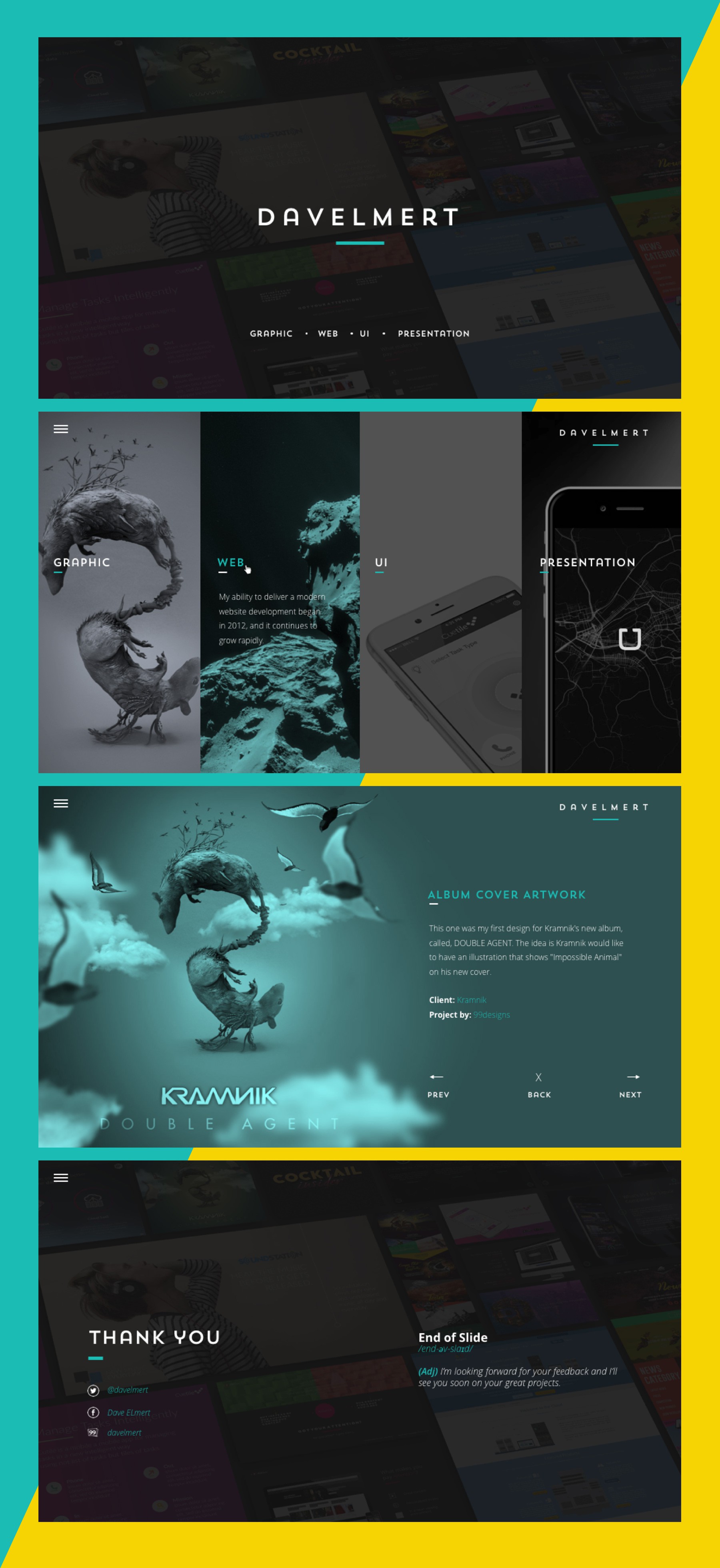 Alle KategorienIllustration & Grafik (1)Postkarten, Flyer & Printdesign (1) PowerPoint-Vorlage (5)Webdesign (1) Hervorgehoben Aktuelle Beliebte Designs Portfolio 10 0 18 0 23 0 2 0 3 0 3 0 5 0 24 2 Über uns I'm Dave, a freelance Web and Graphic Designer. Having a huge passion on mixing Art and Technology with minimalist-contemporary and elegant look. I'll see you soon on your great project. Mitglied seit: 11. Februar 2010 Erfahrung 6 Wettbewerbe gewonnen 11 Zweitplatzierter 4 1-zu-1-Projekte 3 Stammkunden Buchcover PowerPoint-Vorlage Webdesign Produktetiketten Sonstige Werbematerialien Magazincover Zertifizierungen Medium-Level Sprachen Englisch