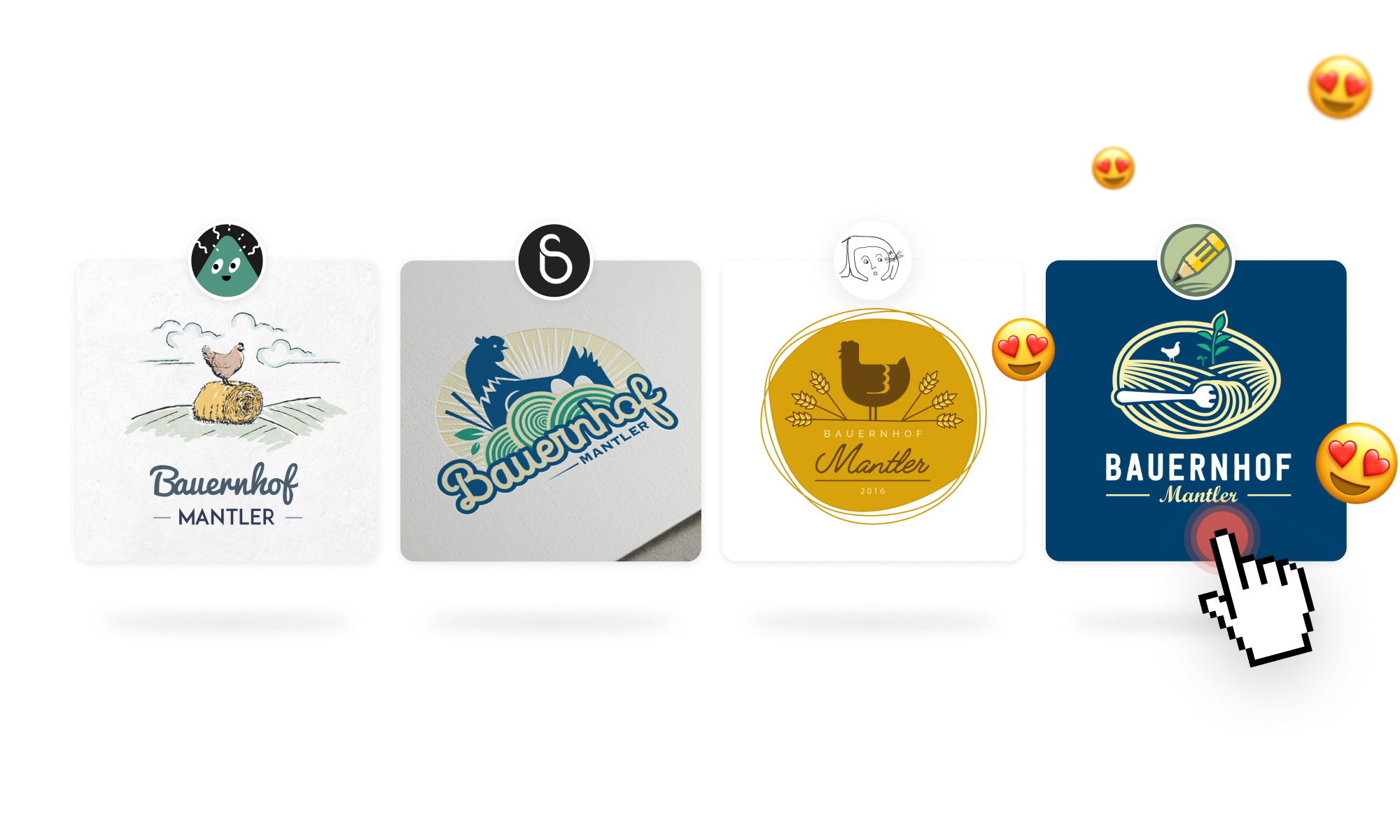 Professionelle Designer aus aller Welt senden Ihnen Ideen. Sie wirken mit und geben Feedback, um Ihr ideales Logo-Design zu erstellen.